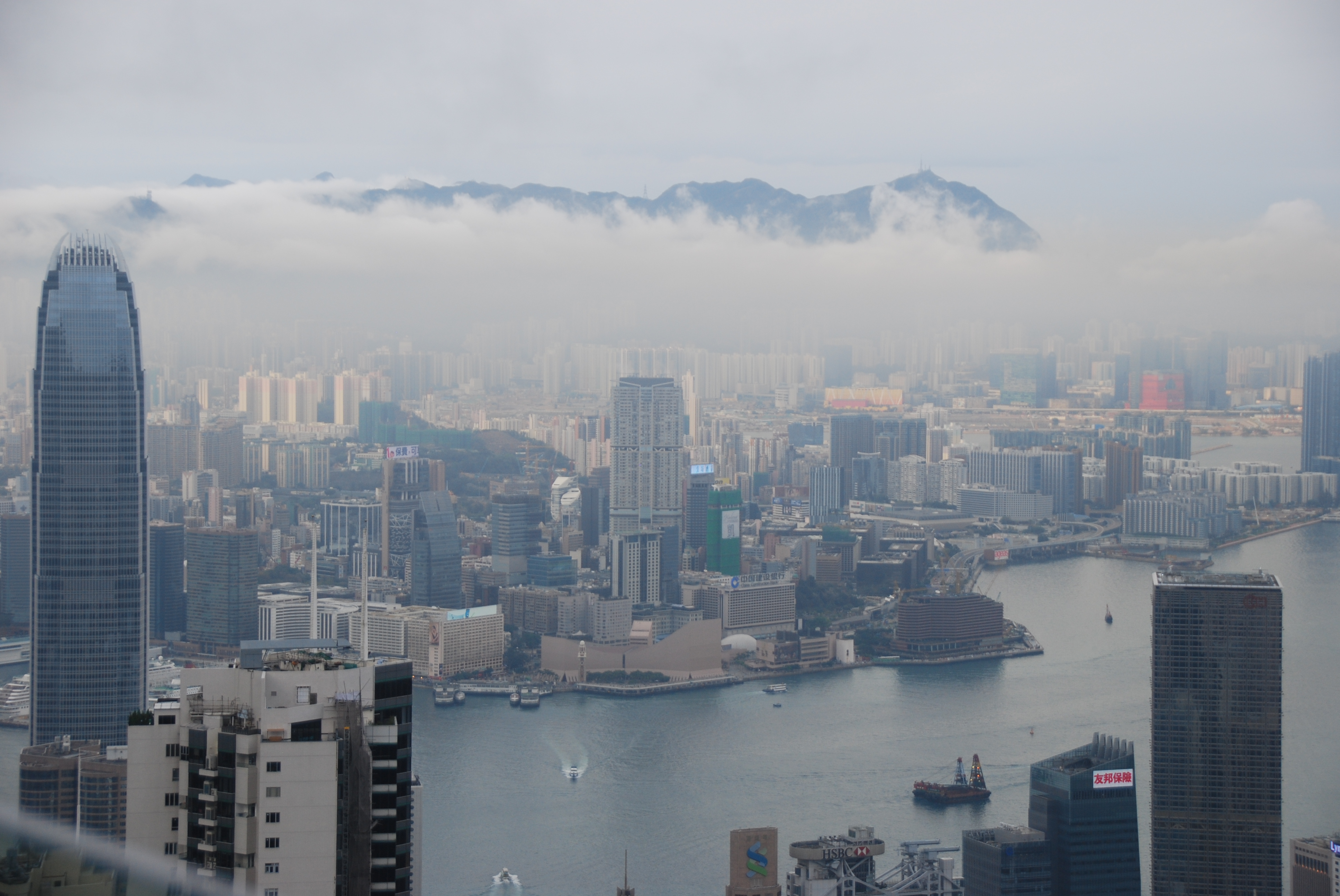 Rainy, cloudy view from the top of Victoria Peak. (photo by Robyn Bushong.)