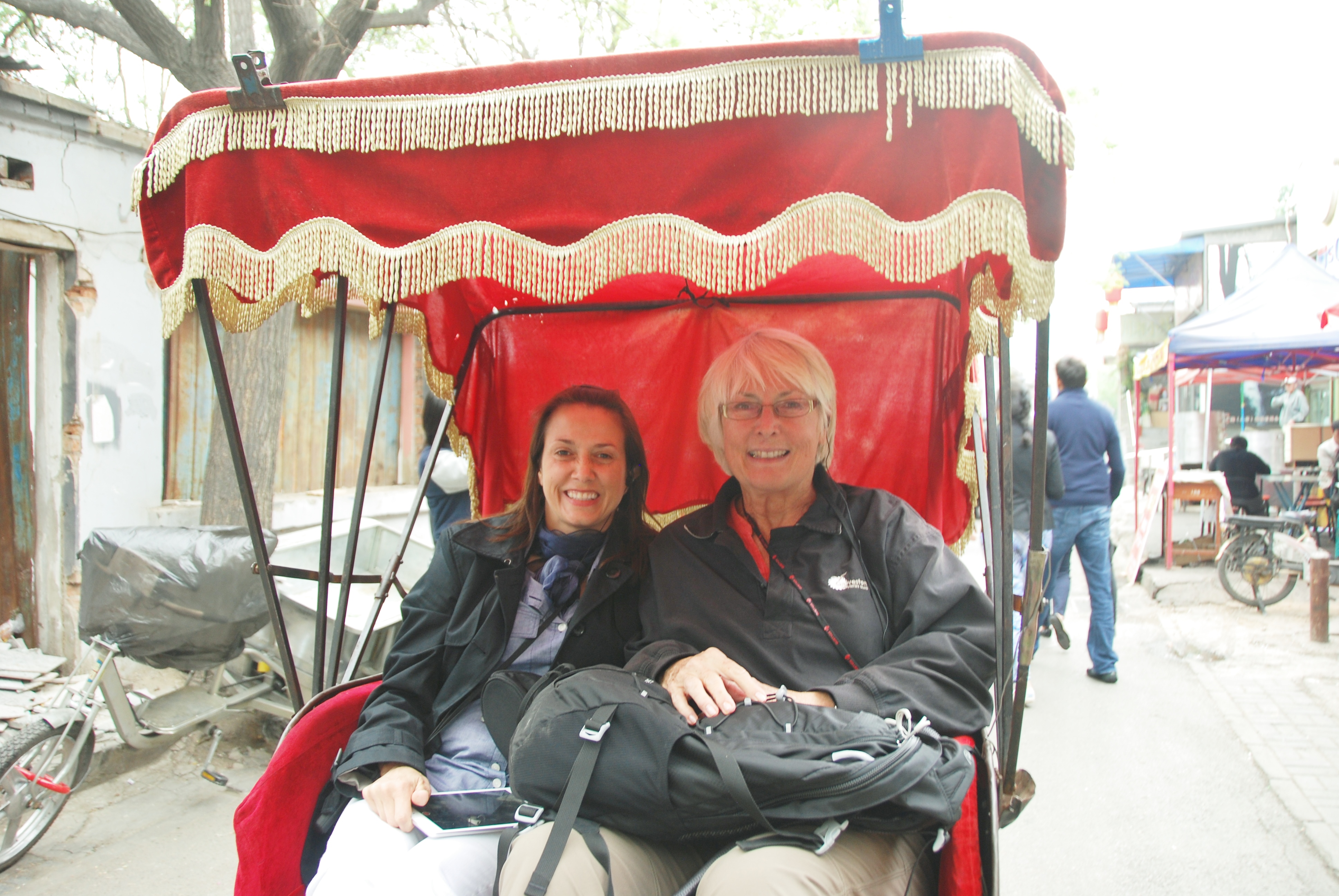 Cynthia (left) and I on our rickshaw ride through The Hutongs ( alleyways) of Old Beijing.