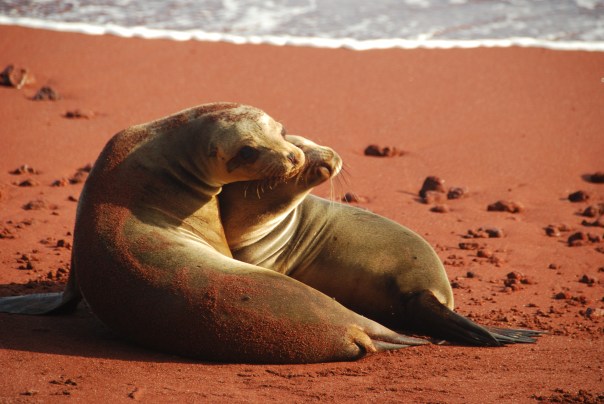 And with that statement, my dear friend, neighbor and traveling companion, Dorothy Trevino, and I looked at each other and said: “Wow…let the adventure begin!” That introduction was made during  the Mandatory Welcome Briefing – held just a few hours after we boarded Silver Galapagos. Our expedition team (comprised of eight highly-trained Naturalists/Expedition guides – all from the Galapagos region and Ecuadorian natives) followed that introduction with an in depth overview of our upcoming voyage as well as the Galapagos National Park rules. We learned that the animals have no fear of humans (e.g. sea lions, red- and blue-footed boobies, great and magnificent frigatebirds. (It’s important to note that the two species of frigatebirds are distinguished by size and by the color of the sheen on their plumage.