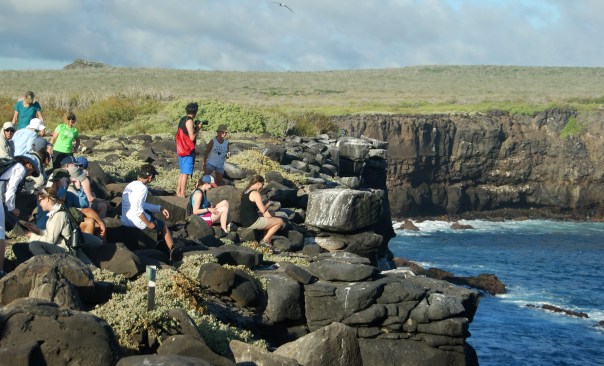 Our group takes a break to enjoy the stunning vistas of Punta Suarez, situated on the the western tip of Espanola – the oldest island in the Galapagos. (Photo by Robyn Bushong.)
