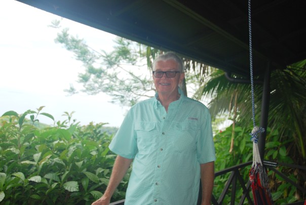 Ed standing on the balcony of our suite at Villa Caletas. (photo by Robyn Bushong.)