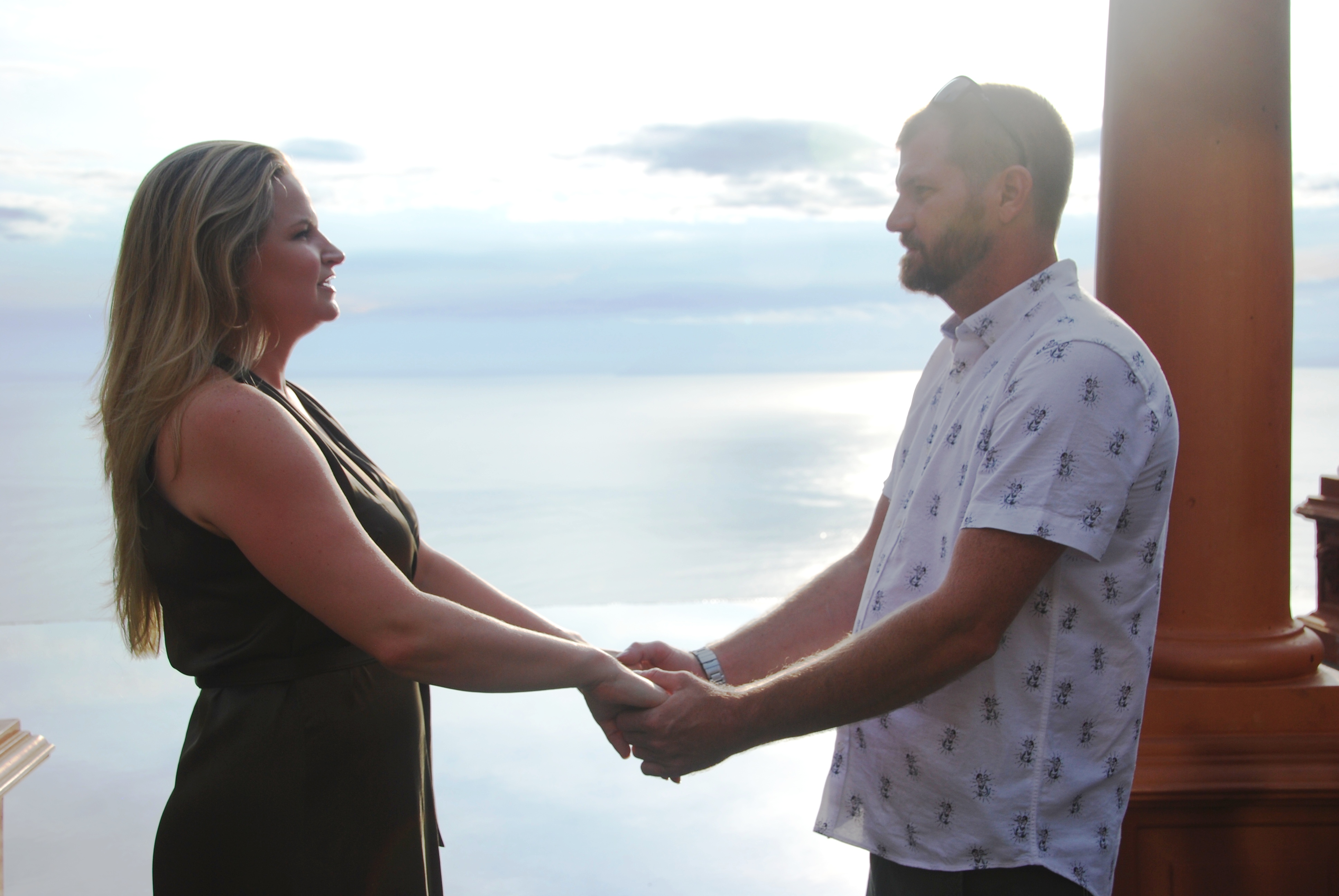 The bride and groom during the rehearsal at Zephyr Palace -overlooking the Pacific Ocean (Photo by Robyn Bushong.)