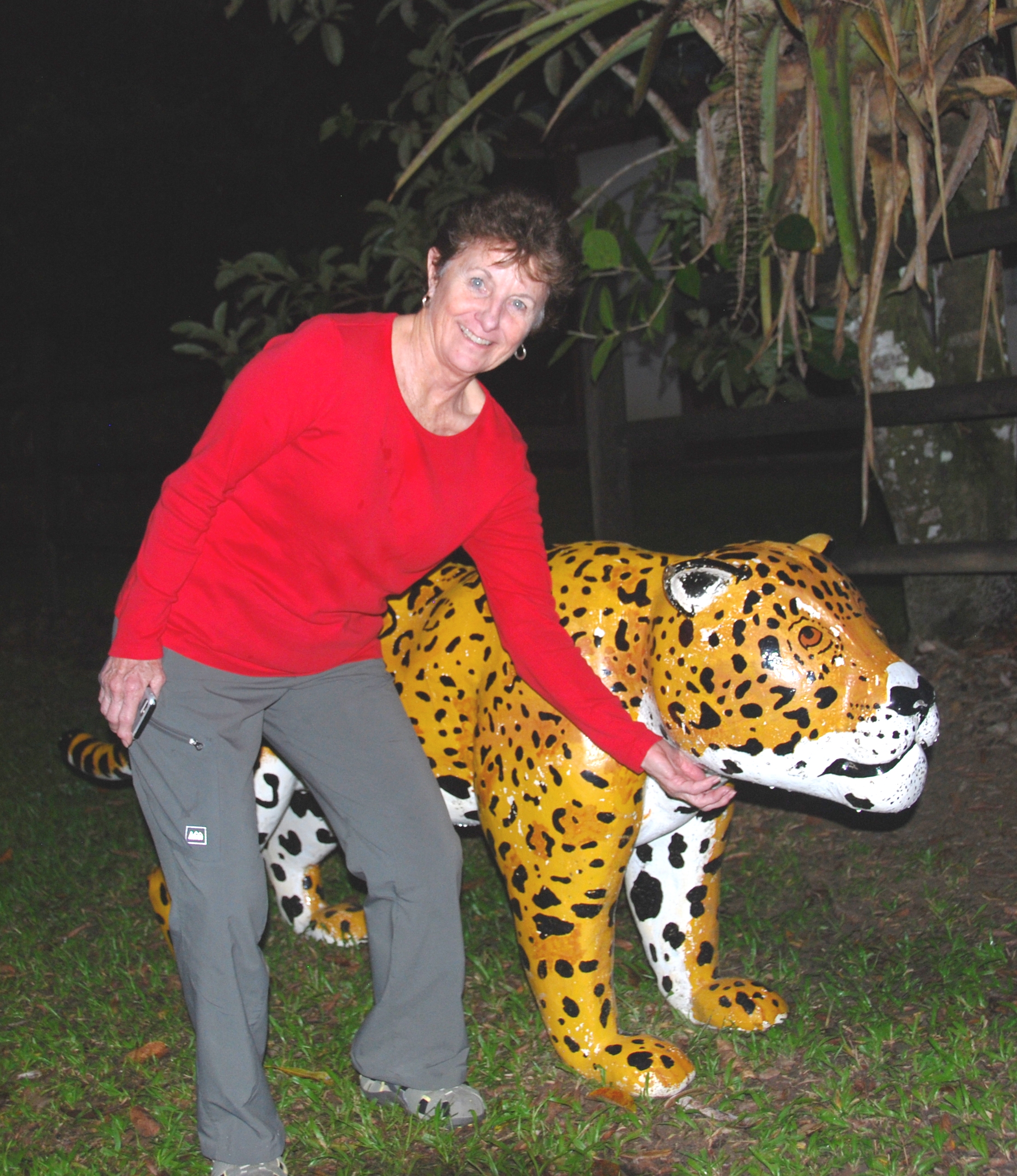 We had signed up for two  tours – including  a “Specialty Adventure” scheduled for our first evening: “Night Hike in Cockscomb Jaguar Preserve.”   Dorothy and I were the only guests on this tour that evening and together with our excellent guide we walked/hiked throughout the natural habitat of nocturnal animals in the “world’s only  jaguar preserve.”  Creatures (albeit very elusive) that live in this preserve include – besides jaguar – puma, jaguarundi (small cat that is closely related to the puma), foxes and other nocturnal creatures.   We hiked for a couple of hours throughout the preserve  before returning after dark  to our resort (about a 45-minute drive.)  We didn’t see any jaguar, but we’re quite confident: They saw us!